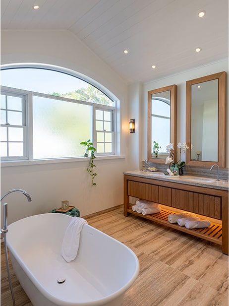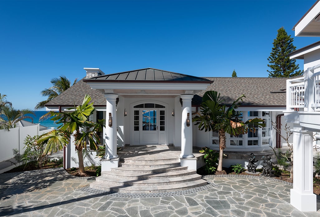 Engineering advice was also sought to meet stringent wind load requirements for this oceanfront property. All windows and doors were specifically designed to comply with standards for water and wind resistance, with reinforced frames and specialised glazing to withstand coastal conditions. These structural considerations were critical to ensuring the home’s durability and safety in the face of severe weather events that may occur.