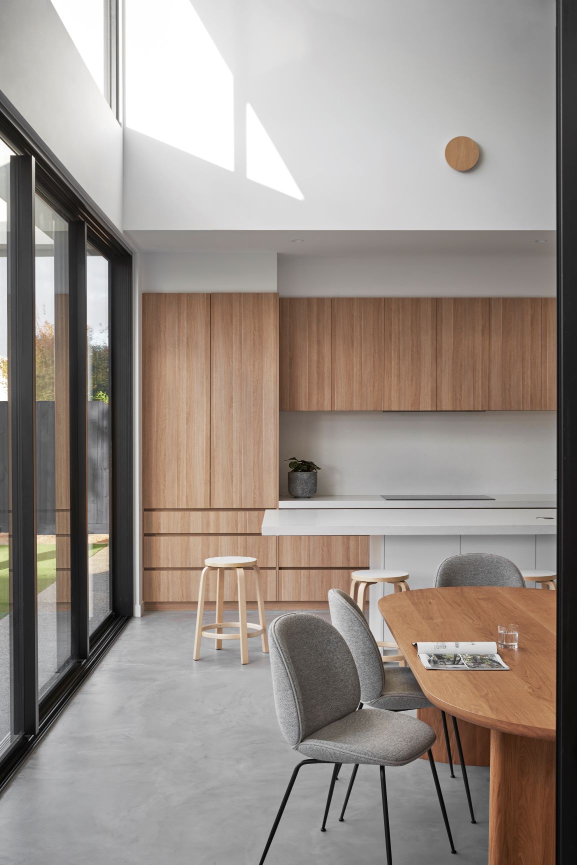 The door that opens the living and dining area to the outdoors is one of the project’s icons. As Anthony explains, “We went with a triple stacking door, a commercial frame by Trend. Not many companies can produce that and, if they do, it's not to the quality that Trend produces.” Adjacent to this is a sliding door. Together, they work to open up the whole corner of the home to fresh air and outdoor access. “There’s literally more glass than plaster here,” says Anthony, describing this stunning feature of the home.