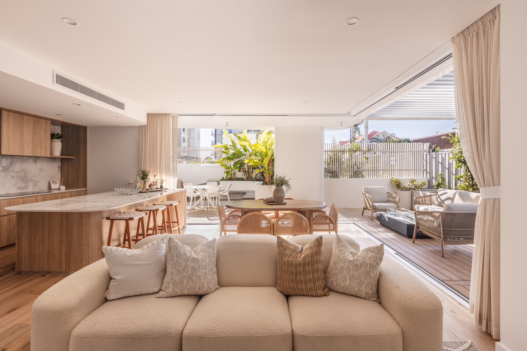 The Perspective on Albatross development required Trend to deliver glazing solutions for a nine unit residential complex, with two units per floor, positioned directly across from Mermaid Beach. The project's defining feature was a series of custom 90-degree external corner stacking doors that would become the centrepiece of each unit, creating seamless indoor-outdoor living experiences while maximising ocean views.